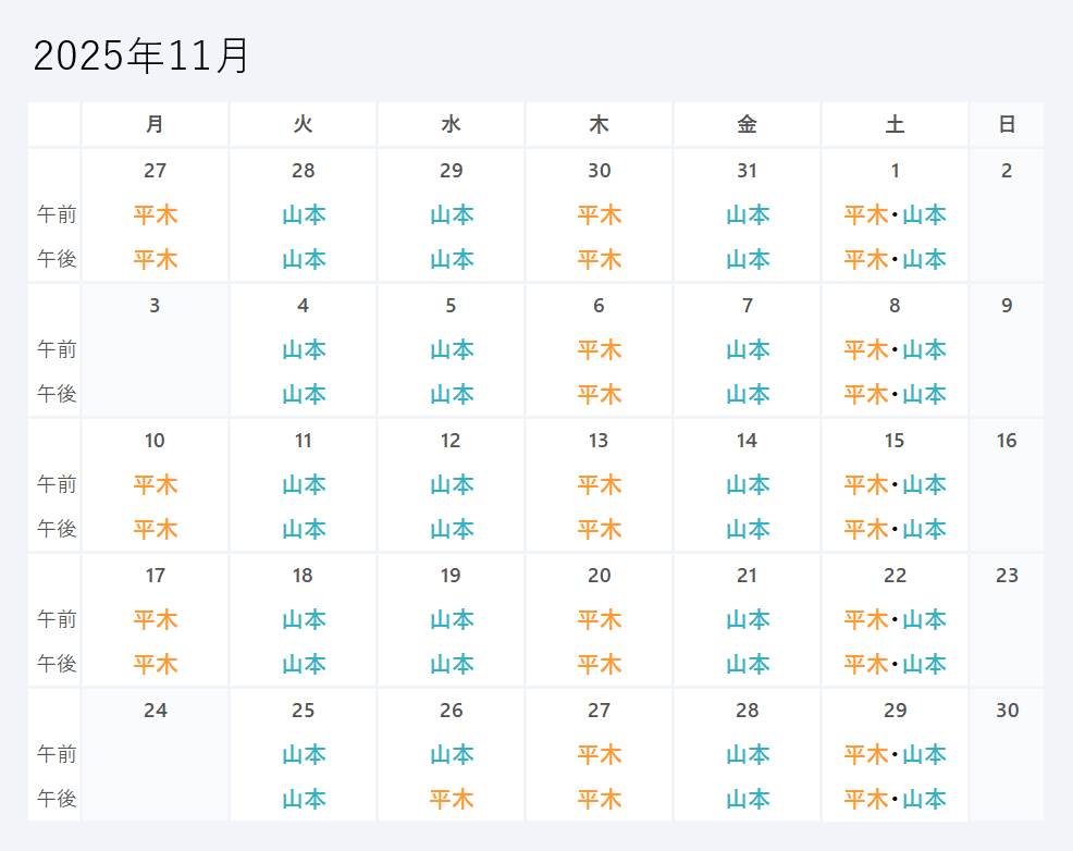 担当医スケジュール